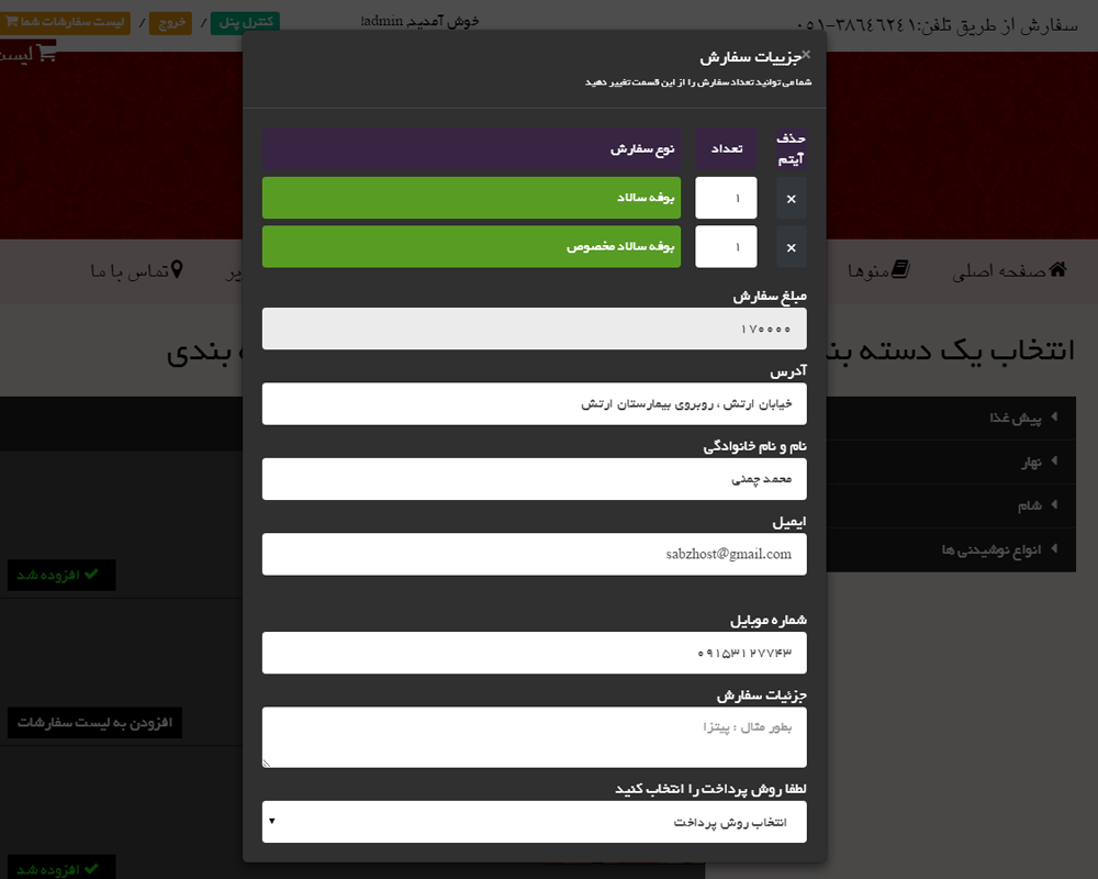 - حساس بر روی ساعات کاری و نمایش پیغام عدم سفارش در ساعات های غیر کاری